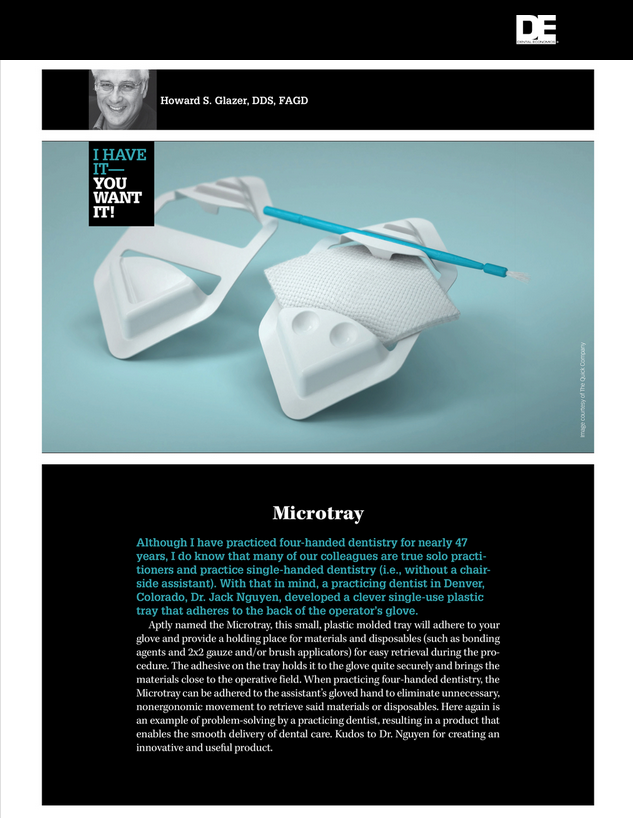 Dr. Howard Glazer provided his expert review of the Microtray in his quarterly column in Dental Economics Magazine.