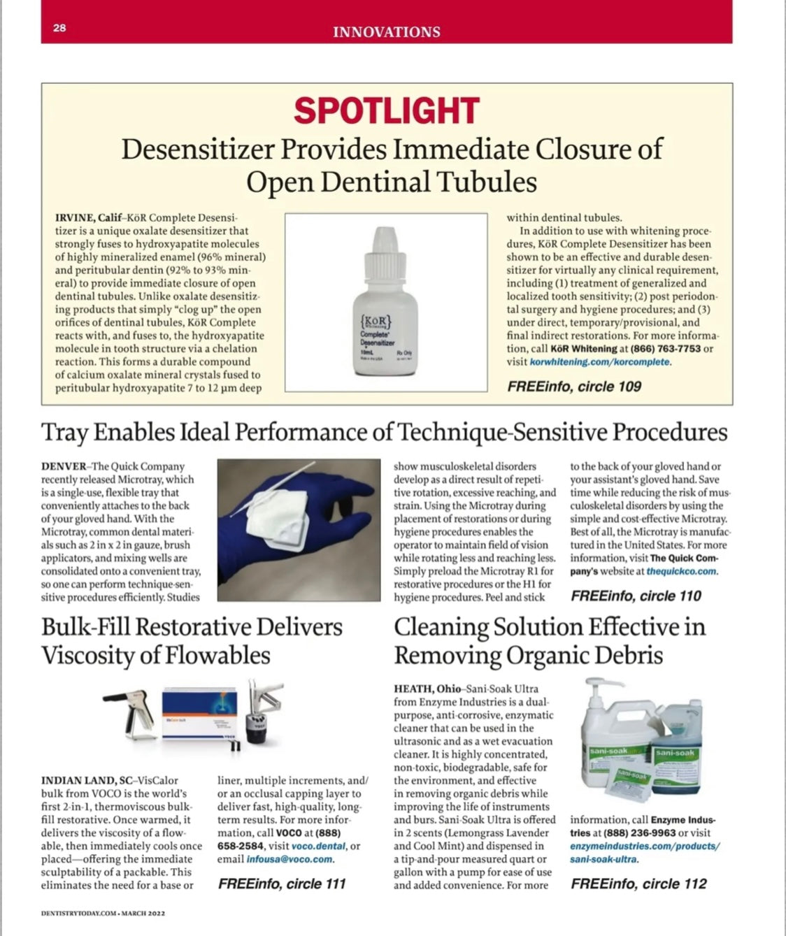 Thanks to Dentistry Today Magazine for featuring the Microtray for the first time in 2022!